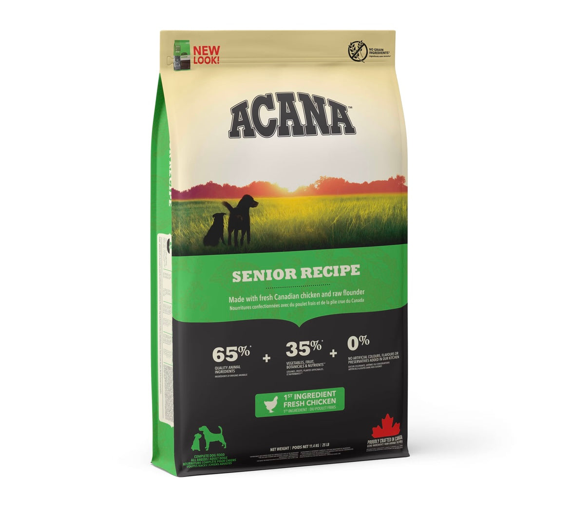アカナのドッグフードは、全ての原材料にこだわり最高品質のものを使用。「アカナ シニアレシピ」は、シニア犬の健康維持のために考え抜かれて作られています。カナダ産の新鮮な鶏肉や生のヘイクなどの高品質な動物原材料を65%、フルーツや野菜、ハーブを35%とバランスよく配合し、悩みが増えがちなシニア犬の健康をサポートします。