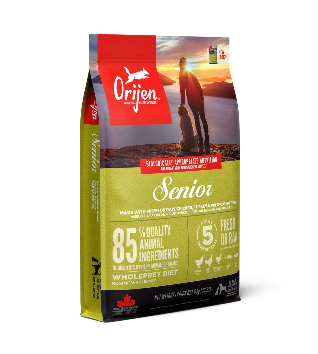 シニア犬の健康を維持するためには動物原材料由来のタンパク質を豊富に含む食事が欠かせません。「オリジン シニア」は新鮮な放し飼いの鶏や七面鳥、天然の魚、平飼いの卵を原材料に、肉、内臓、軟骨、骨を使用した高品質なタンパク質たっぷり配合のシニア犬向けドッグフード。原材料の3分の2は新鮮または生のもので、新鮮な食材をオリジン自社キッチンで丁寧に調理することで、鮮度が良く栄養たっぷりのフードができ上がります。「オリジン シニア」は愛犬の無駄のない筋肉と体重維持のサポートをお約束します。