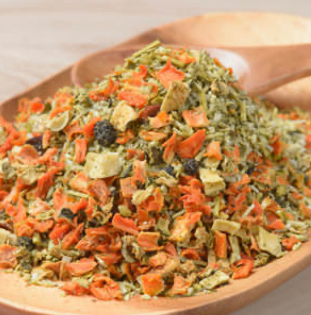 農薬や化学肥料を使わず育ったビオの野菜やビオの果物のフレーク。香り高く食欲をそそります。 保存料・香料・着色料・酸化防止剤不使用。ミートフリーでアレンジ自在です。パートナーのいつものごはんへのトッピングや手作り食の食材としておすすめ。
