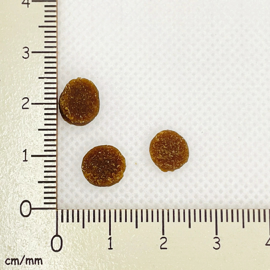 粗タンパク質 18.7%以上、粗脂肪 6.5%以上、粗繊維 0.7%以下、粗灰分 5.5%以下、水分 30.0%以下