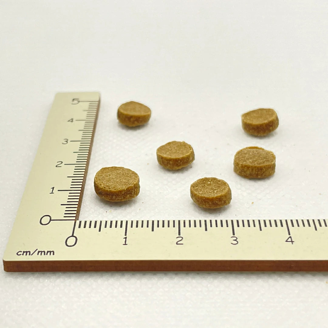 粗タンパク質 23.3%以上、粗脂肪 5.0%以上、粗繊維 3.9%以下、粗灰分 4.5%以下、水分 10.0%以下