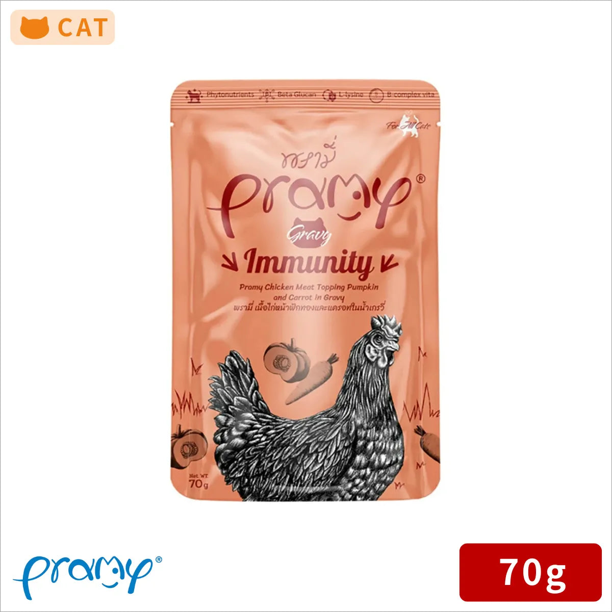 プラミーは、美味しさと栄養にこだわった愛猫用のキャットフードです。プラミー チキン・ニンジン・カボチャ グレイビー イミュニティー 70g 正規品 Pramy キャットフード ペットフード ウェットフード 猫用