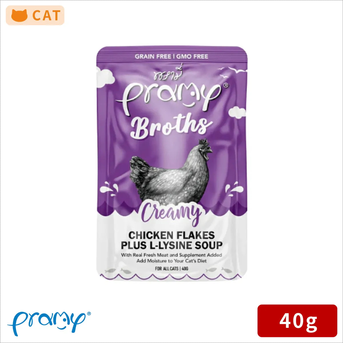 プラミーは、美味しさと栄養にこだわった愛猫用のキャットフードです。プラミー クリーミー チキンフレーク プラス L-リジン スープ 40g 正規品 Pramy キャットフード ペットフード 猫用
