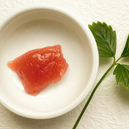 犬種や年齢を問わず多くのパートナー(愛 犬)に使ってほしいという願いから、おいしさだけでなく、やわらかさのバランスにもこだわって作りました。ジューシーで素材感たっぷりなゼリーがお口に広がるやわらかさに仕上げました。お散歩の水分補給や硬めのゼリーだと丸飲みが心配なパートナーにもおすすめです。暑い日は個包装のまま凍らせて冷たくしてから与えるのもいいですよ。
