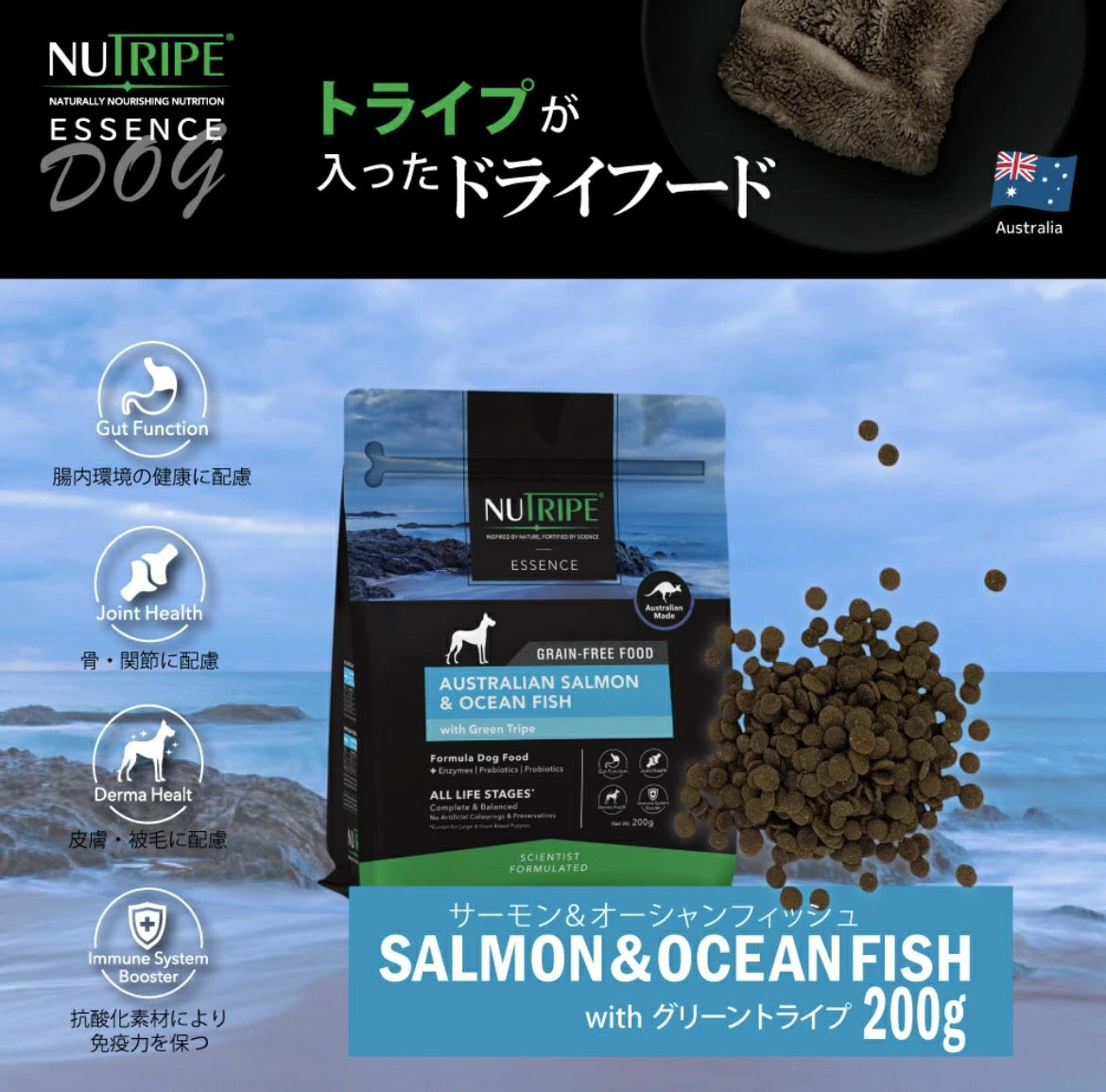 愛犬の毎日の食事はとても重要です。 ニュートライプ ドックフード ドライ サーモン&フィッシュ&グリーントライプ 200g 正規品 ドッグフード 全犬種 全年齢 全ライフステージ オールステージ 超小型犬 小型犬 中型犬 大型犬 仔犬 成犬 老犬 ペットフード ペット用品 ペット 犬 お試し