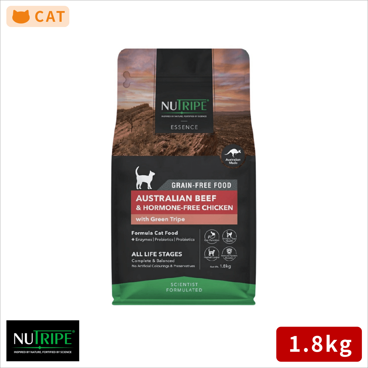 愛猫の毎日の食事はとても重要です。 ニュートライプ キャットフード ドライ ビーフ&チキン&グリーントライプ 1.8kg 正規品 ドライフード ペットフード 穀物不使用 グレインフリー NUTRIPE