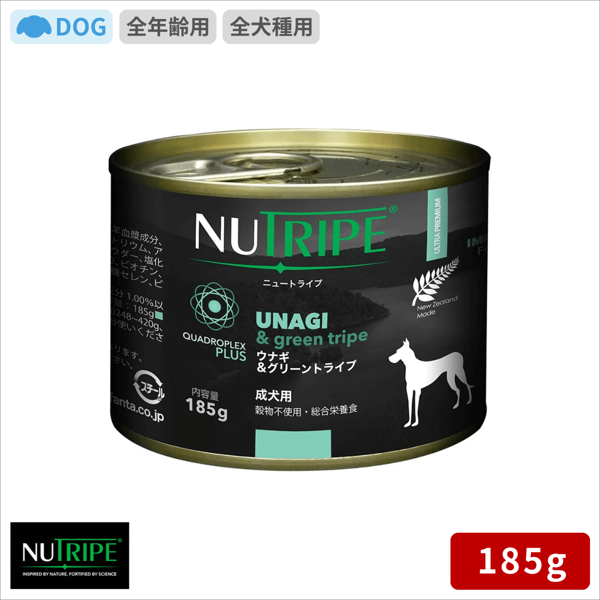 栄養満点!食いつき抜群のウエットフード ニュートライプ ウナギ&グリーントライプ 185g 正規品 ウェットフード 成犬 全年齢用 全犬種 総合栄養食 ドッグフード NUTRIPE 缶詰